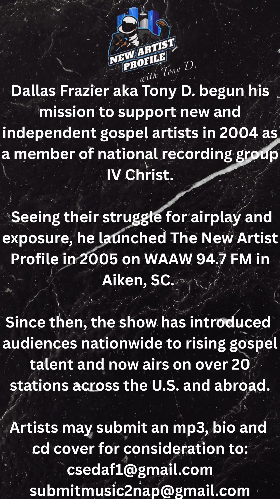 Be the first to receive exciting updates. Stay connected, stay inspired, and never miss a beat from The Music of Tony D.